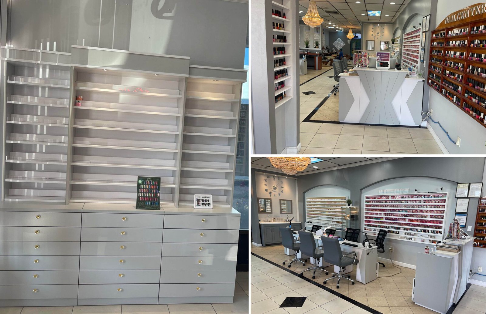 Tiệm Royal Nails & Lash đã chọn sử dụng sản phẩm nội thất từ công ty chúng tôi, và chúng tạo ra không gian sang trọng và chuyên nghiệp. Khách hàng sẽ được trải nghiệm dịch vụ với sự thoải mái và tiện nghi tối đa. Đến với chúng tôi, bạn sẽ cảm nhận được sự đầu tư chất lượng và sự chăm sóc đặc biệt từ đội ngũ chuyên nghiệp tại Tiệm Royal Nails & Lash