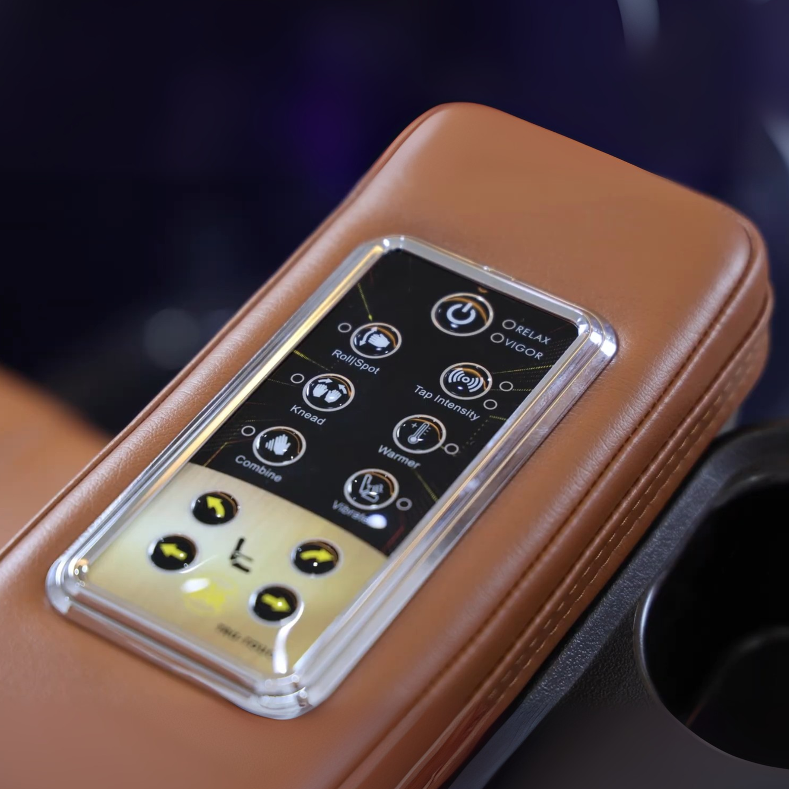 Built-In Remote on Armrest – Simple controls for massage and recline functions, placed within easy reach.