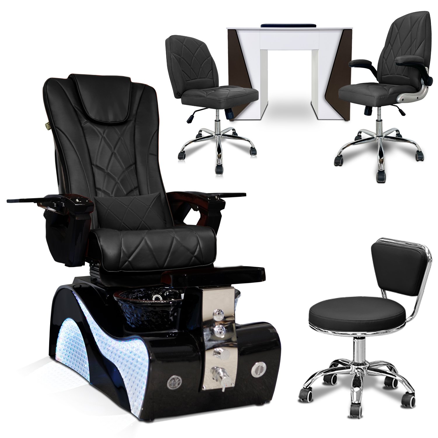 Complete Nail Salon Furniture Set – NewWave Pedicure Spa Chair + Nail Table + Venus Customer & Technician Chairs