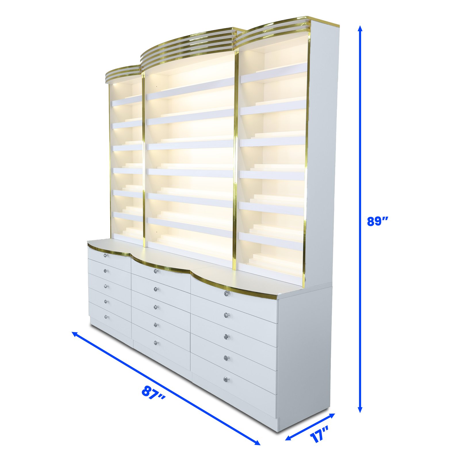 In the booming beauty industry, a professional workspace is defined by how perfectly aesthetics meet efficiency. The Polish Center Cabinet 87” Royal Line is not just a storage solution; it is a masterpiece of design crafted for high-end salons that demand excellence and opulence.