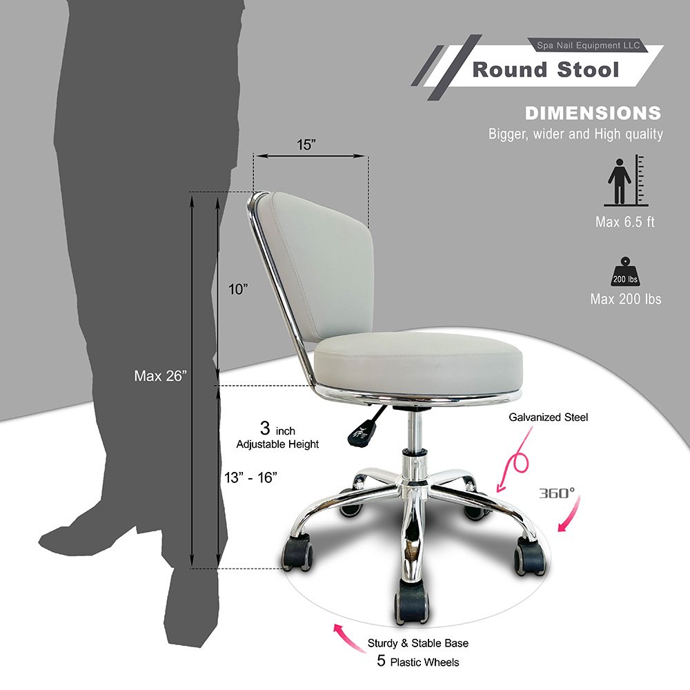 In terms of design, the Pedicure Technician Stool strikes a balance between function and style. Its compact frame is perfect for salons with limited space, while its availability in 8 vibrant colors allows owners to match the stool with their interior theme. Whether your salon aims for a classic, modern, or playful look, this nail stool adds the right touch of professionalism and sophistication.